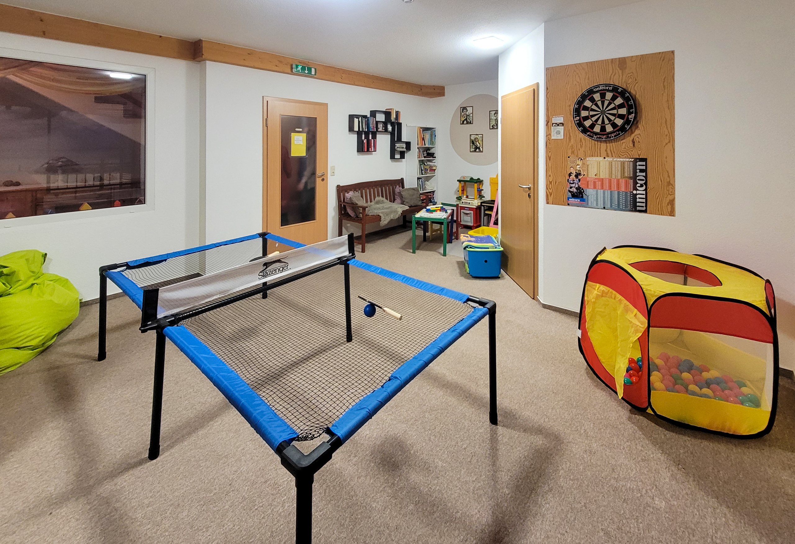 Unser umfangreich ausgestatteter Kinderspielraum lädt Klein und Groß zum geselligen Spielen ein.