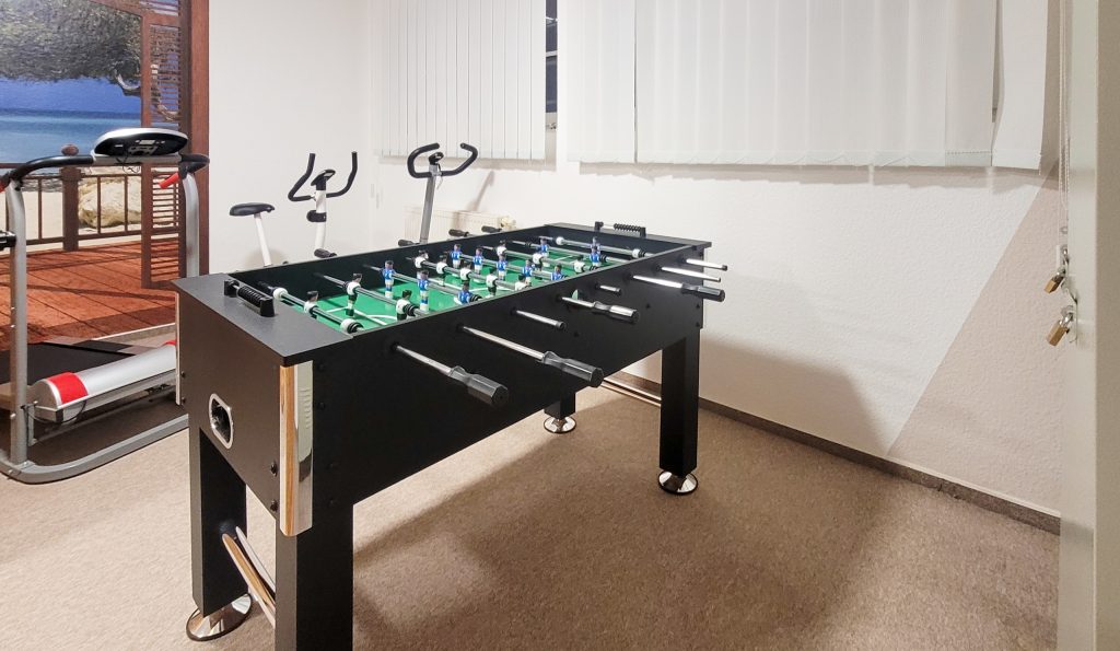 Spillelokalet har et bordfodboldbord, et bordtennisbord og meget mere. Bøger og brætspil er selvfølgelig også om bord.
