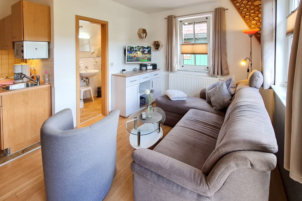 Unsere Ferienwohnung „Panorama“ hat eine Wohnfläche von 55m² und bietet Platz für bis zu 5 Personen.
