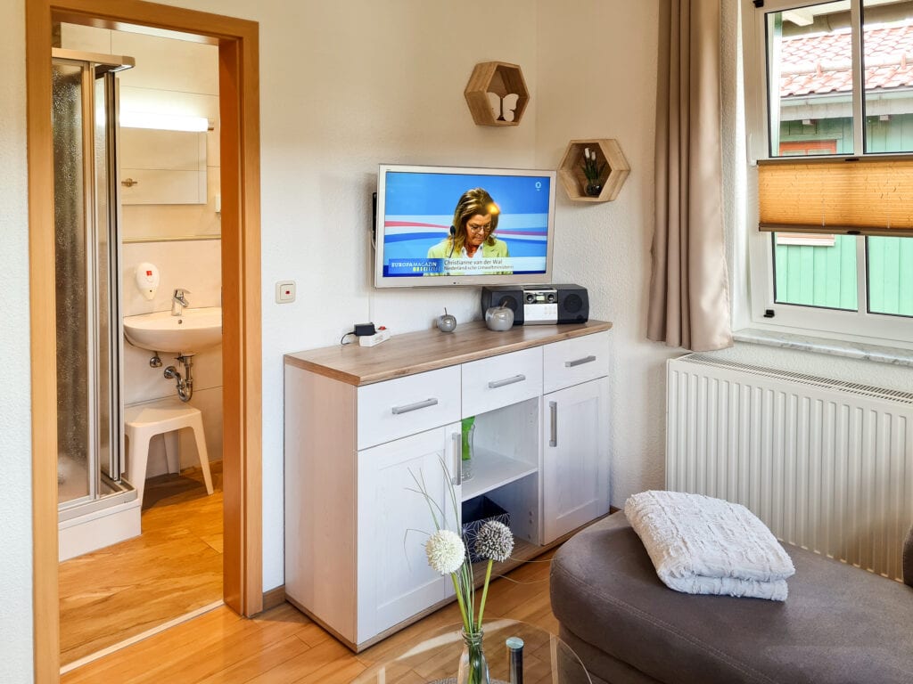 Das komfortabel eingerichtete Wohnzimmer mit Flachbild-TV und hochwertigen Möbeln sowie einer Couch (als zusätzliches Bett nutzbar) lädt zum Entspannen ein. Zwei separate Schlafzimmer, eins davon mit Doppelbett, das zweite mit Futon Bett 140 cm x 200 cm und jeweils mit Kleiderschrank, sind vollwertig ausgestattet. Ein Kinderbett und Hochstuhl für unsere kleinsten Gäste stellen wir auf Wunsch in Ihre Wohnung.